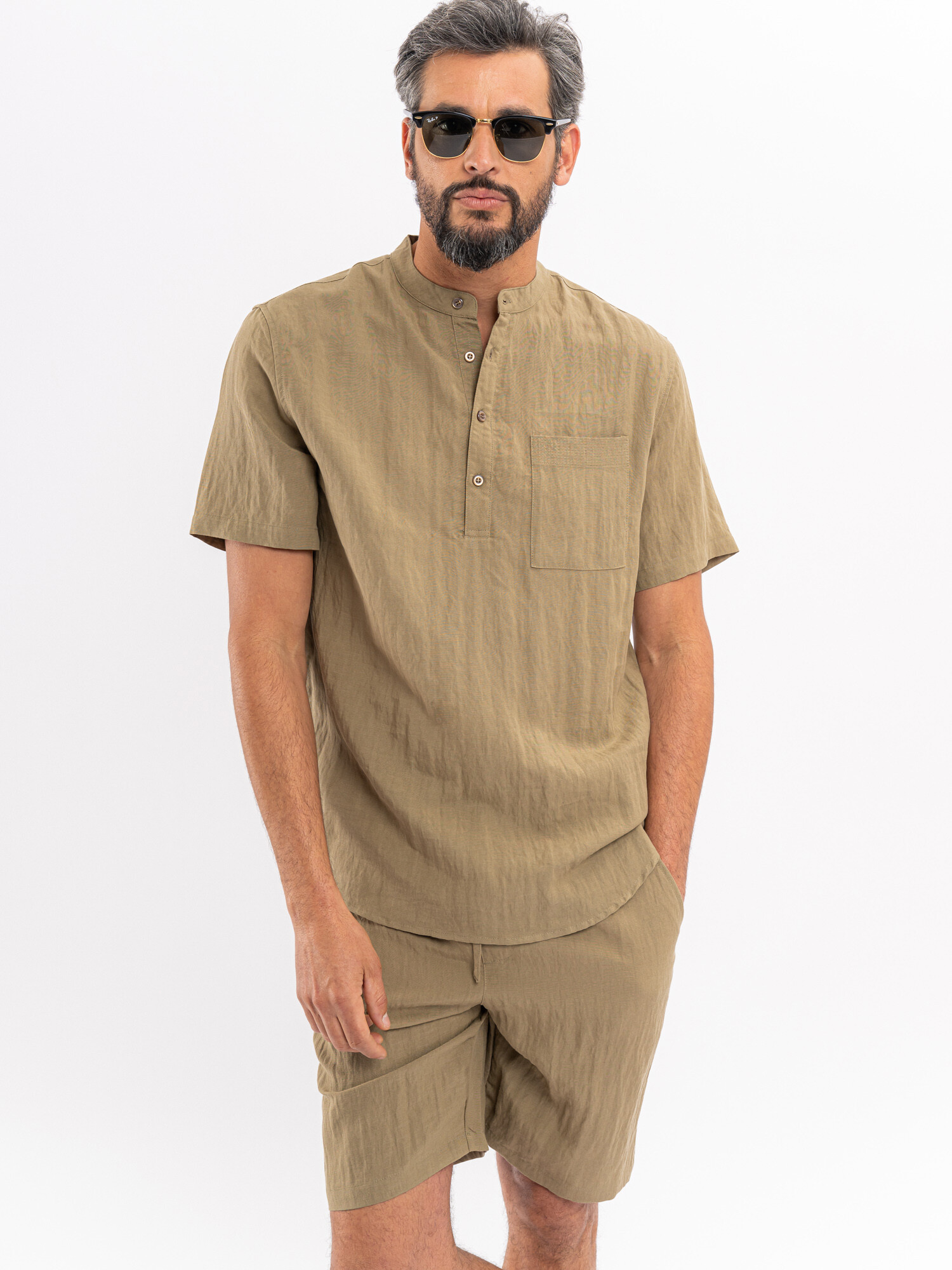 Camisa m/c cuello mao - tostado