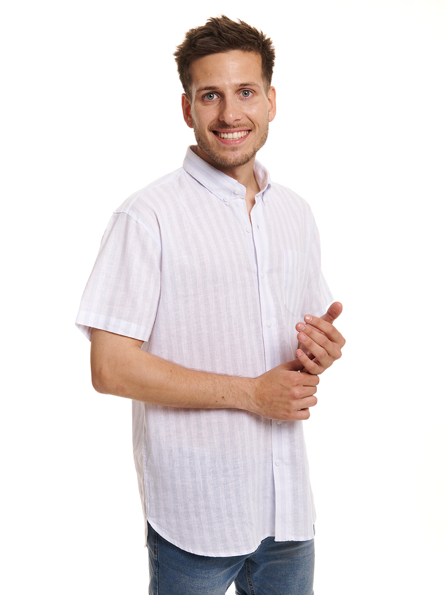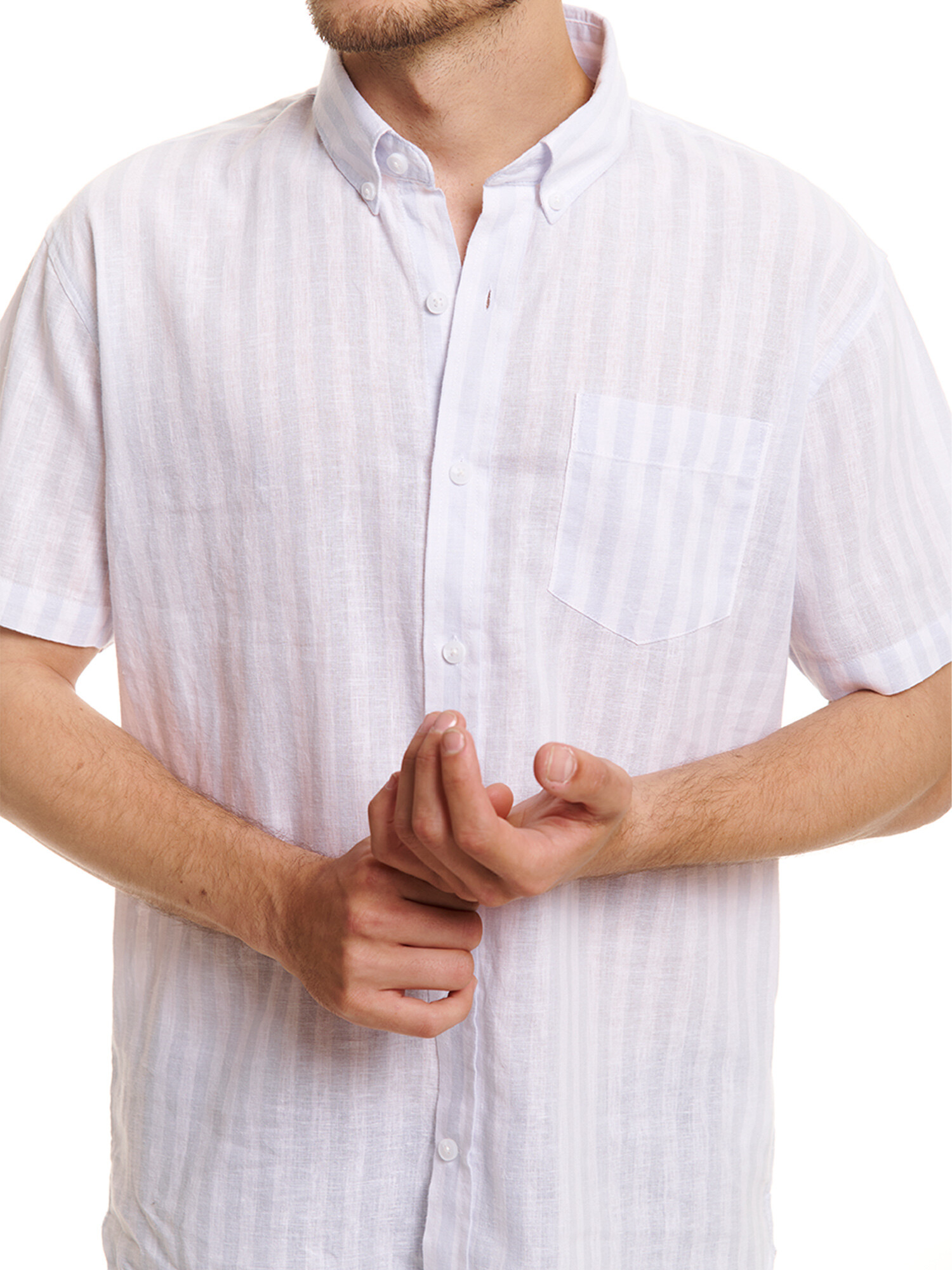 Camisa m/c lino - celeste