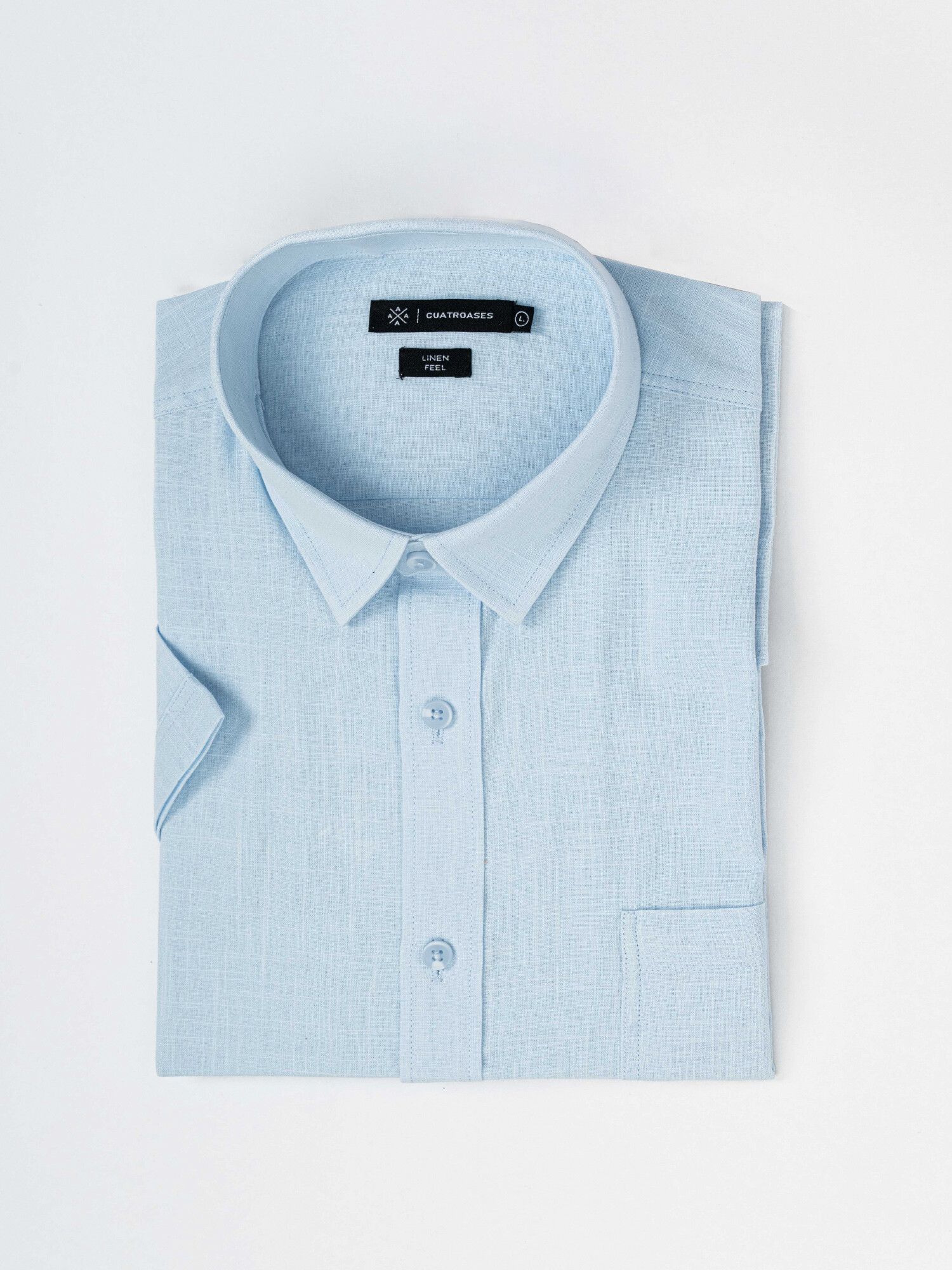 Nuevos Camisa m/c lisa efecto lino - celeste