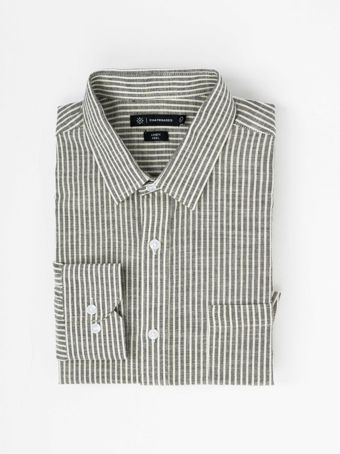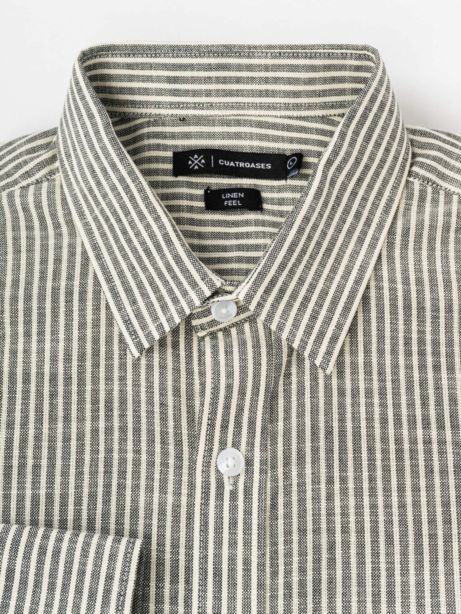 Camisa m/l efecto lino rayada - negro